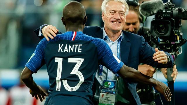 坎特是德尚在上届世界杯之前收获的意外礼物。2015-16赛季,凭借中场八爪鱼一般的神奇表现,和莱斯特城一起赢得英超冠军后,他就顺利入选了法国队的欧洲杯名单,尽管之前他仅仅为法国队出场过1次。法国队虽然欧洲杯争冠失利,德尚却确立了坎特、博格巴这对中场中路地组合,成为2018世界杯夺冠的法宝。