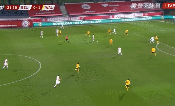 22'比利时左路连续传递,德布劳内外围大力远射破门!